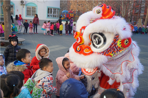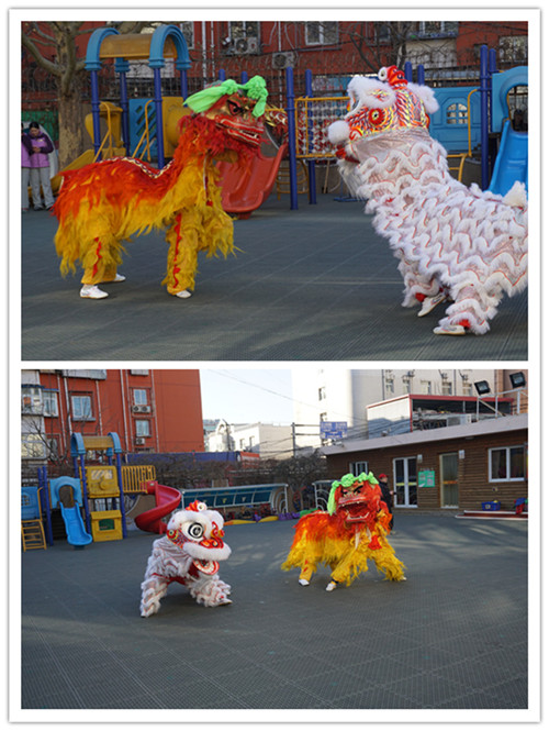 2016年12月23日,牡丹分园全体幼儿观看了精彩的舞龙舞狮表演,该表演由热心家长蒙一班王锦秋的妈妈支持,由首都体育学院传统体育专业的6名学生担任主演。