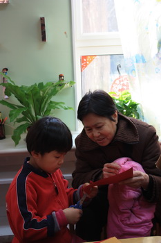 祖孙一起做礼物盒