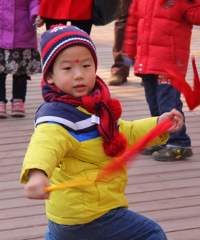 红红的绸子甩起来,欢快的秧歌扭起来
