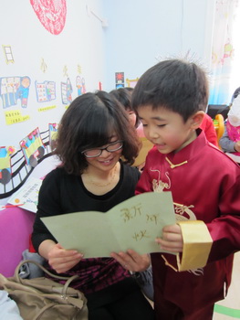 捧着小朋友亲自制作的新年贺卡,幸福和喜悦洋溢在脸上