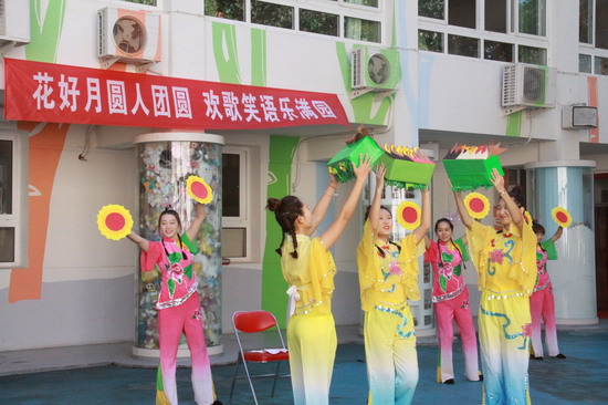 临近中秋佳节,与中秋节相关的系列活动也在如火如荼地开展着。孩子们了解中秋节的由来,做月饼,观察月相变化,学习有关中秋节的歌曲……与此同时,面向全园的中秋表演活动也于2015年9月25日隆重上演。
