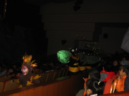 2008年12月23日,我园小、中、大班小朋友来到中国木偶剧院观看了大型奇幻剧《猴王》,由此拉开了我园迎新年庆祝活动的序幕,传奇的故事、精彩的表演,变幻速离的舞台背景,色彩斑斓的服装,深深地吸引了小朋友,赢得孩子们的阵阵掌声。