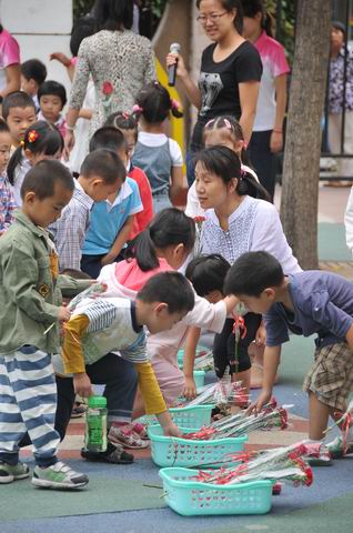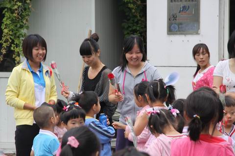 在朵朵花团的簇拥下,孩子们向老师们献上鲜花,献上深情谢意和美好祝福。