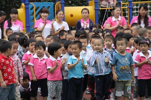 所有的小朋友、教职员工欢聚一堂,欢迎新入园的小宝宝们同时庆祝小朋友升班。