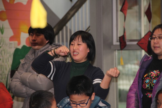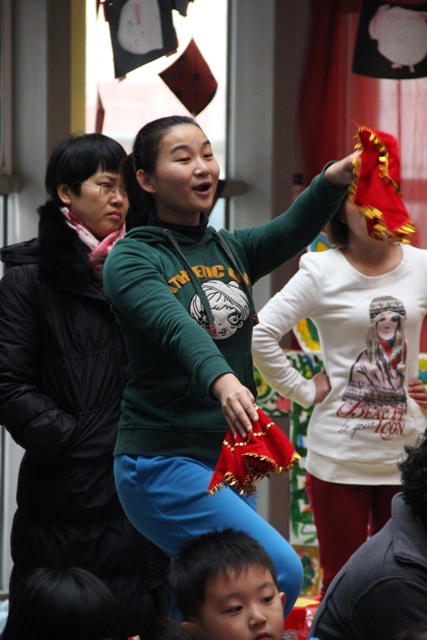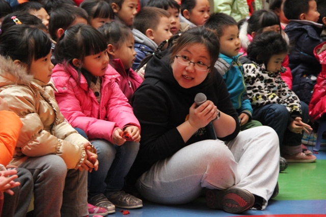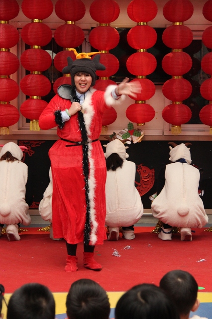 老师表演童话剧《喜羊羊战胜红太狼》