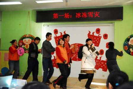今年的教师联欢以2008年发生的重大事件为素材,各部门精心准备,展示了令人大喜大悲的2008年。