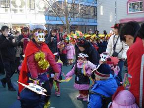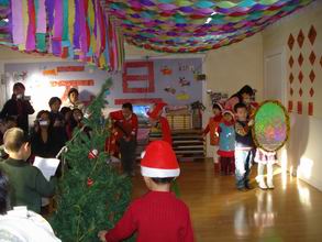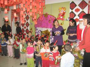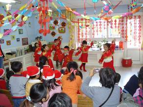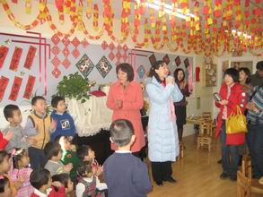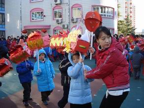 “锣鼓喧天辞旧岁,龙腾狮舞迎牛年”,08年的最后一天,孩子们盼望已久的新年联欢会如期而至。在装扮得红红火火的教室里,孩子们与老师及爸爸妈妈欢聚一堂,表演了精心准备的节目,玩起了妙趣横生的亲子游戏。之后,大家又来到户外,舞龙舞狮扭秧歌,把节日的欢乐气氛推向高潮!快来看,精彩瞬间不容错过哦!
