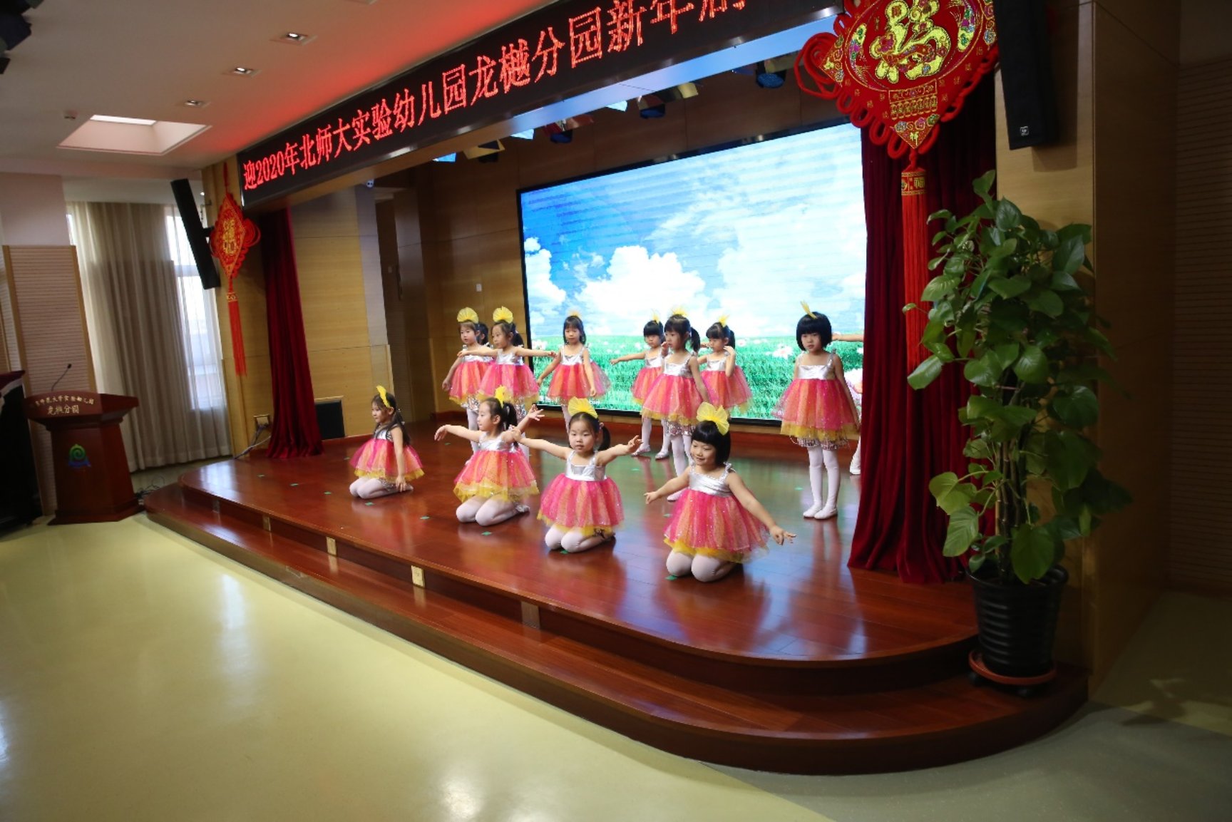 最后,在大班女孩子一曲活泼可爱的《蓝天蓝》舞蹈中,结束了本次热闹的新年剧场。