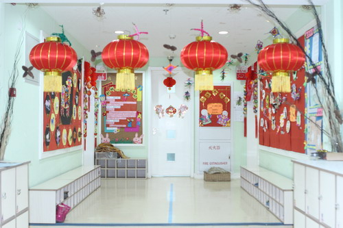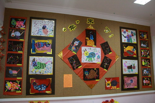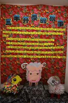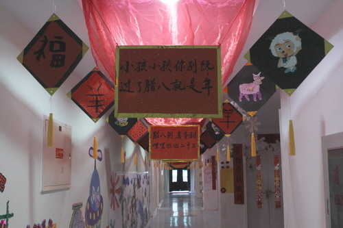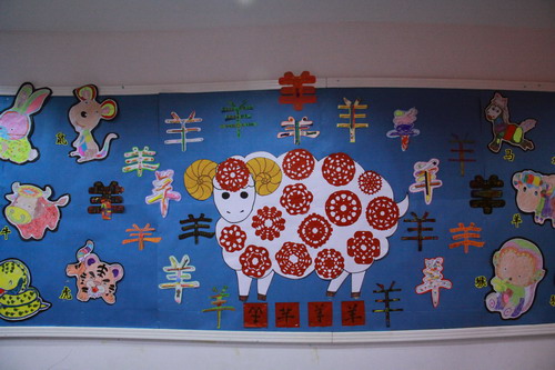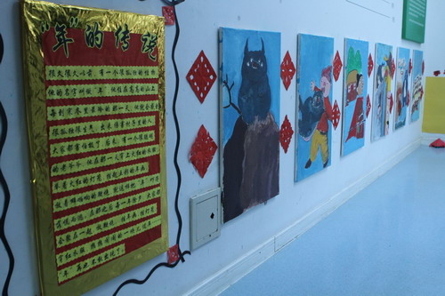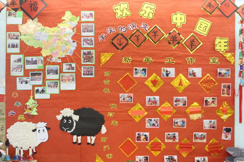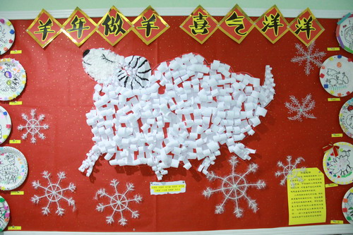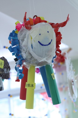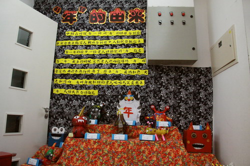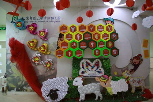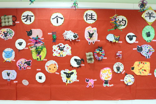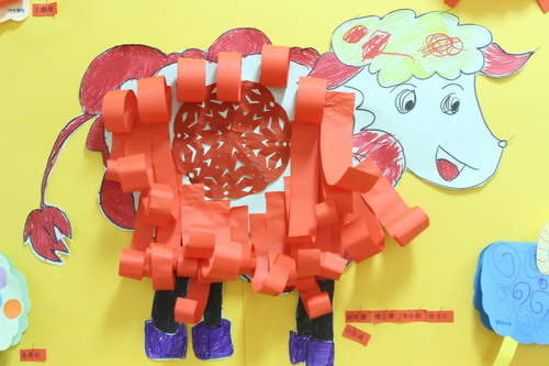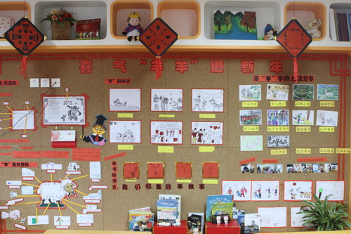环境中,当形态各异的“羊”,关于“羊”的成语、“羊”的挂饰布满楼道,当各具特色的灯笼高高挂起,当富有韵味和传统年味的童谣映入眼帘,年的味道便愈发浓郁。环境中还呈现了幼儿对中国传统故事中“年”的形象,各种不同想象、创意、富有个性的表征,其大胆、童趣、多样化的表达让滚球app不禁惊叹幼儿的艺术想象力与创造力。滚球app坚信,在孩子们参与环境布置的过程中,在欣赏环境中丰富多彩的展品与作品的过程中,环境作为隐性课程的作用也得到了充分体现。