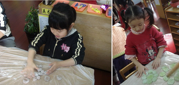 为了让孩子们对冬至的节日习俗有更深刻地体验,有的班级还组织幼儿自己动手包起了饺子。孩子们在老师的指导下,亲自尝试搓条、擀皮、包馅等技能。品尝着自己的劳动成果,节日的喜悦和自我服务的成就感洋溢在每个孩子的脸上。