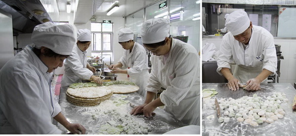 一大早,厨房师傅们就精心准备了香喷喷的饺子馅和代表健康、快乐、喜庆、幸福的彩色饺子皮。上午9点,在园长的带领下,后勤和班级的老师与厨房师傅们一起,为全园700多名幼儿和160多名教师包起了精致的手工水饺。按照传统习俗,部分饺子里还包上了象征吉祥的阿胶枣,以期把更多的祝福带给大家。