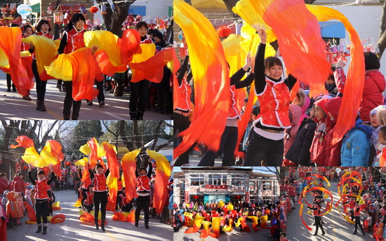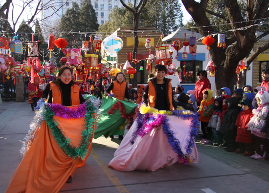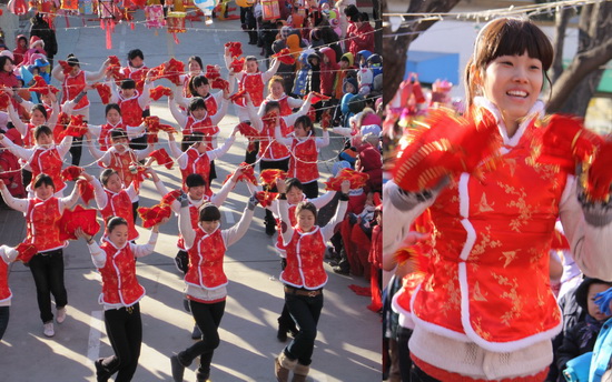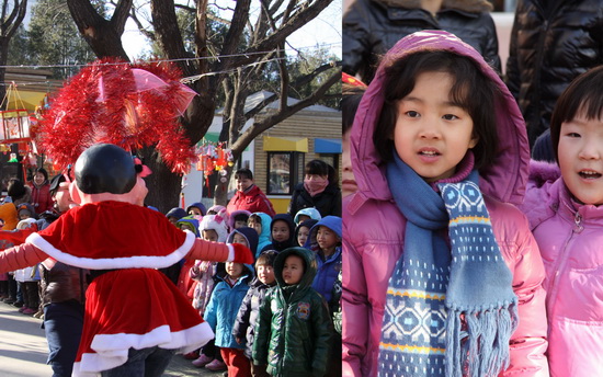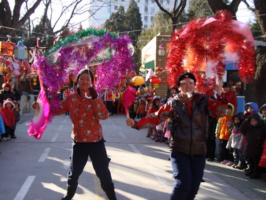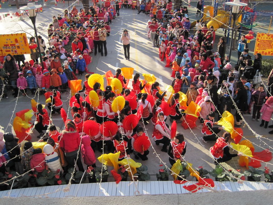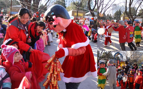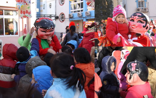 2011年1月6日上午,由老师们自编自排的跑旱船活动如期开始了。和着喧腾的锣鼓,伴着孩子们手中挥舞的红绸,旱船、秧歌、扇子舞、二人转轮番登场,好戏连连!大头娃娃与孩子们的幽默互动,进一步点燃了现场观众们的参与热情。最后,全园师生共同扭起欢快的秧歌,节日的喜悦在园里不断升腾!