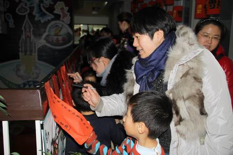 “张灯结彩”是中国过年传统的景象,幼儿园在庆新年的环境布置上也注重孩子视觉感受与主动参与,让环境成为教育的一部分。本次活动从孩子了解“猜灯谜”这一传统习俗,到亲子制作灯笼、收集灯谜、装饰环境,最后猜灯谜兑奖品。每个环节都蕴含着对幼儿传统年文化的教育,灯谜全是幼儿在家长的协助下自己挑选的,难易适合,也增加了幼儿在猜灯谜活动中的成就感。