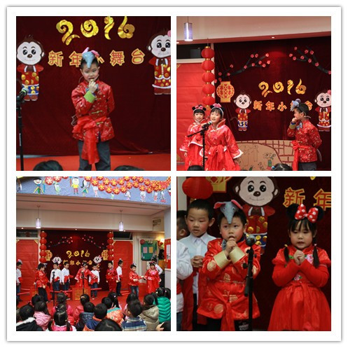 “新年小舞台”作为第一个庆祝活动拉开了节日的喜庆氛围。本着“我的节日我做主”的教育理念,在老师们、孩子们的精心准备下,2015年12月24-25日两天三场舞台表演活动紧锣密鼓地进行着。孩子们在舞台上自信、大方地表演,绽放着幸福的笑脸,全园上下一片喜气洋洋的氛围。