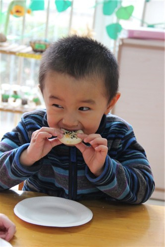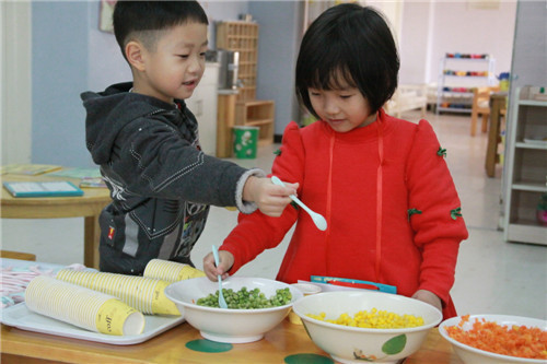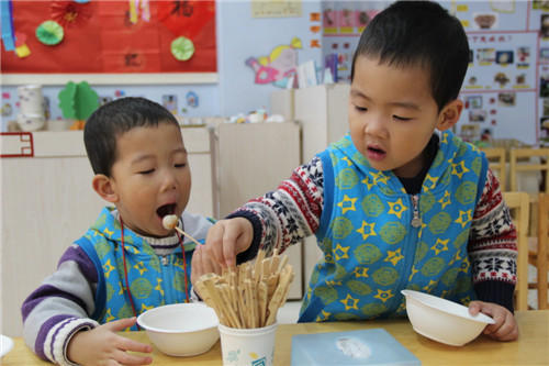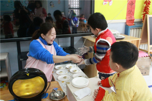 庙会是一种集吃喝玩乐为一体的民间娱乐活动,它还有一个特别的名称就是“自主性活动”。这一天,全园孩子们不分班级,不分年龄,每一间教室都有美食与游艺项目供其自由选择,你可以与好伙伴一起吃吃玩玩,品尝“新年”的味道、享受“自主”的乐趣。