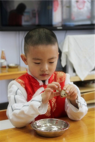 剥鹌鹑蛋——无比的专注与认真