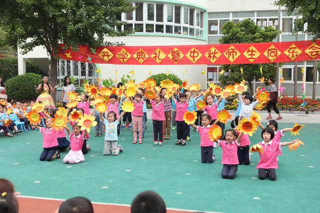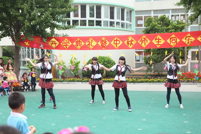 在庆祝活动中,老师们演出了传统节目《嫦娥奔月》,为孩子们形象地讲述了中秋节的来历……孩子们生动表演了合唱《种太阳》、《笑一个吧》、《幸福的花朵》、《哇哈哈》、《月亮姑娘做衣裳》等精彩节目。青年老师们还特别奉献了舞蹈《花球舞》、独唱《日不落》和《卓玛》、长笛《梁祝》、爵士舞、现代舞等,赢得了小朋友的热烈掌声。