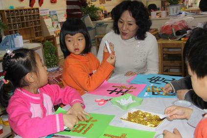 元旦前夕,牡丹园全托和日托的孩子们参加了“辞旧岁,迎新春,虎年游艺日”的活动。这次活动项目多多,贴福字、吉祥话、拓印老虎、吹腊梅花、老虎泥塑、吹蜡烛……为的就是让孩子们高高兴兴、自由自在,同时感受新年的民俗文化。
