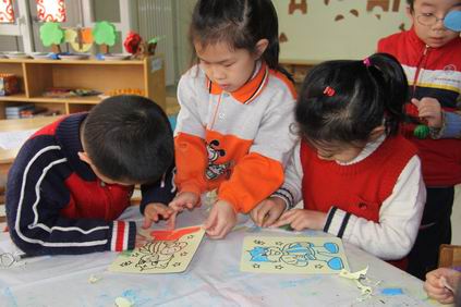快快乐乐奔向自己喜欢的游艺项目 把白色的瓷器“虎”染成彩色