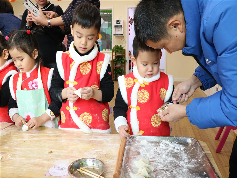过年习惯吃饺子,是取新旧交替"更岁交子"的意思。美味的馅料,软硬正合好的面团儿,擀皮儿,捏边儿,看,小朋友们包的饺子还不错吧?