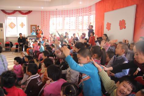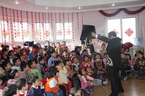 新年来临,幼儿园里张灯结彩,喜气洋洋。魔术大师们分别给日托和全托的孩子们带来精彩的魔术和杂技表演。魔术师们娴熟的技艺让孩子们惊喜、兴奋、好奇……整个演出掌声不断、加油声不止,场面相当热烈、火爆。