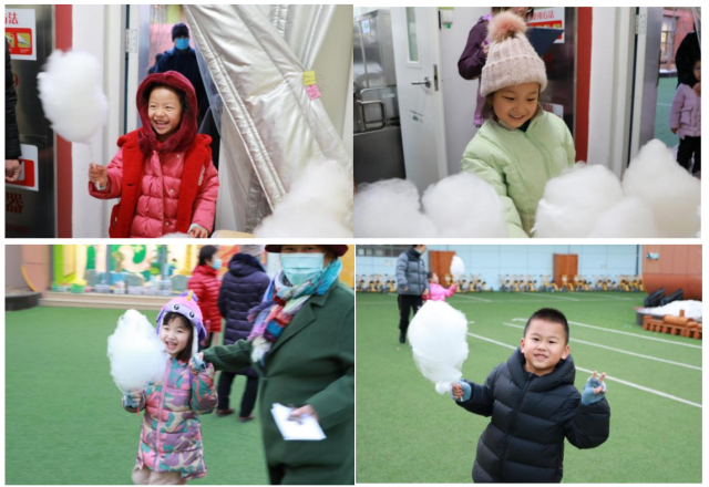 等待了一年的心心念念的棉花糖啊,拿到手的瞬间,点亮了娃儿们一张张笑脸。