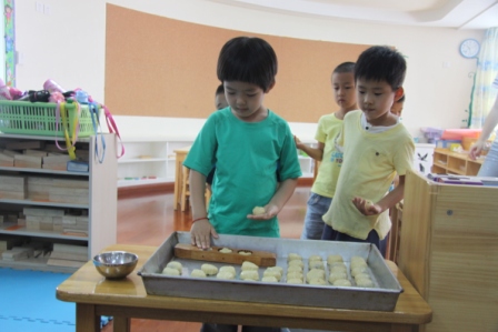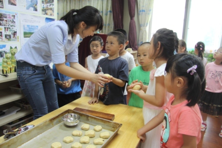 随后孩子们亲手制作了月饼、品尝了月饼,带一小块香甜的月饼和家人分享,中秋节幸福团圆!