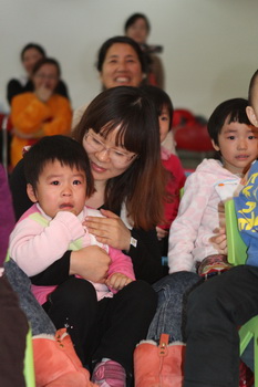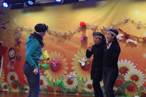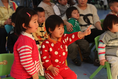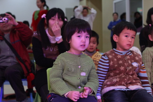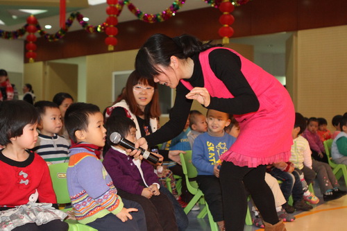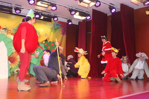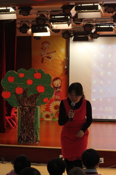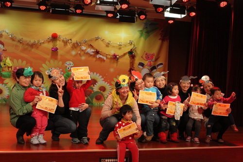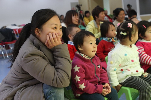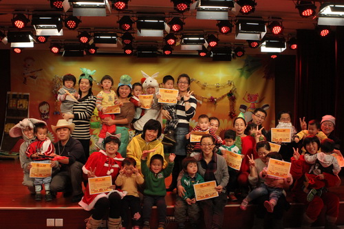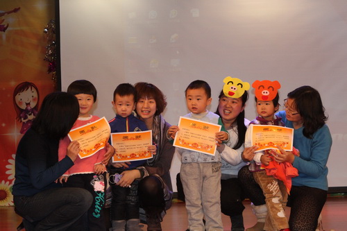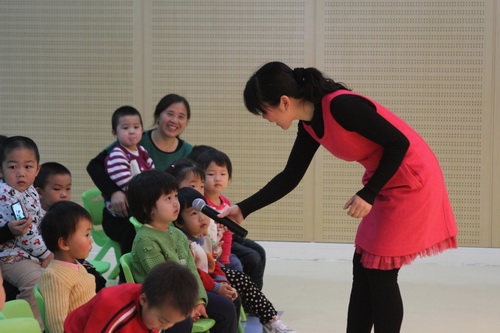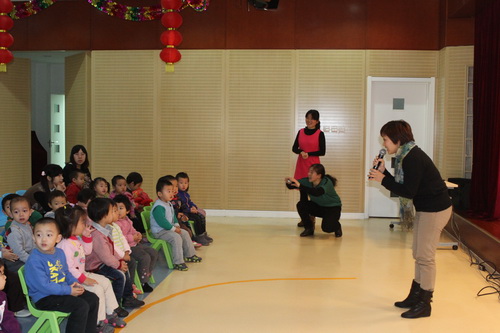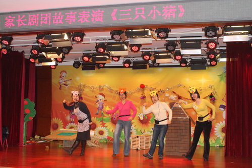 经过家长们前期报名、选剧本、分角色、制作道具、彩排等一系列的紧锣密鼓地筹备,2012年12月14日,“宝宝故事剧场”的首场演出——“宝宝迎新剧场”如期开始了,家长们表演了《小熊请客》、《三只小猪》、《拔萝卜》、《小蝌蚪找妈妈》等经典故事,精彩的表演充分调动了孩子们的兴趣,孩子们的表情也跟随剧情变化而或喜或忧。最后,宝宝们还亲自为参与演出的热心家长们颁发奖状,感谢他们的创意与付出!