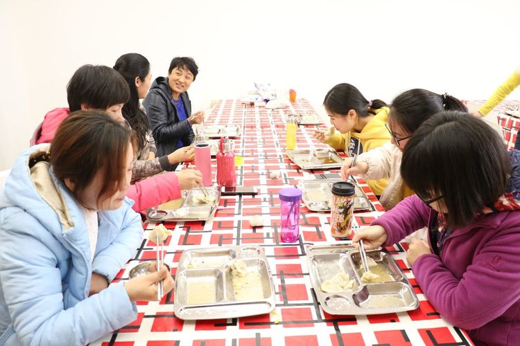 | 时光匆匆而过,冬至来临,天寒地冻,而在园内却上演着家一般的温暖,吃饺子是冬至的象征,在这个中国地道的传统节日里,厨房师傅们你和面、我打陷、你擀皮、我煮水,不辞辛苦,精心地为全园老师准备了饺子盛宴。 热腾腾的饺子出锅了,浓浓的饺子香扑鼻而来。 |
