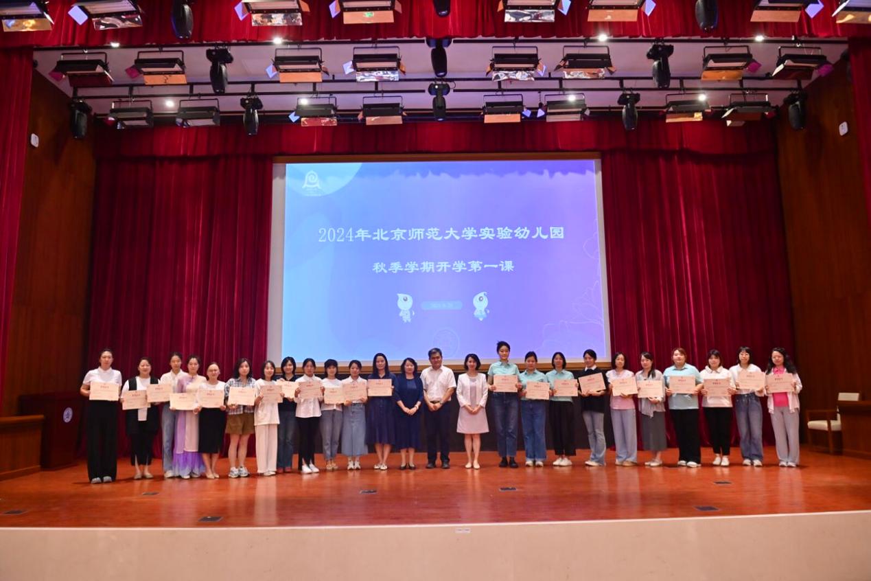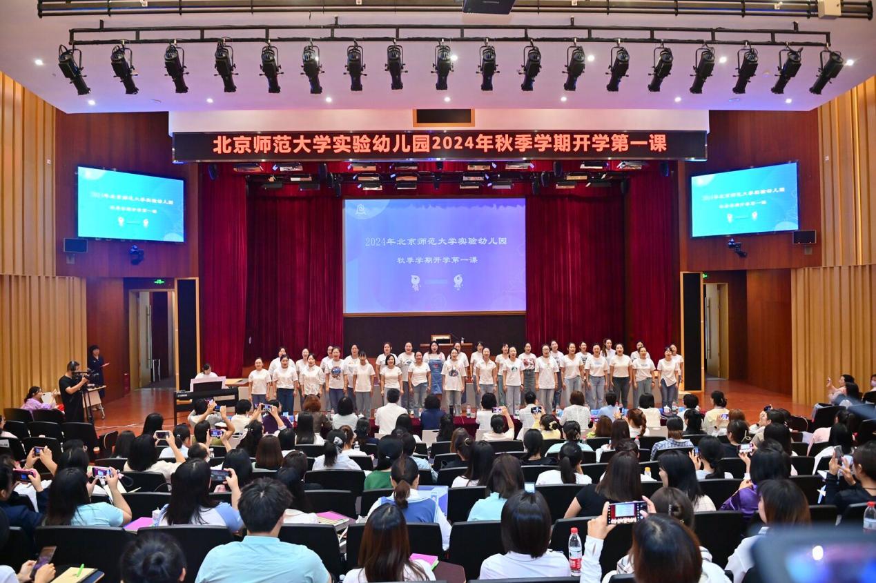 砥砺奋进,乘风破浪开新局。为深入贯彻党的二十届三中全会强调的:“教育、科技、人才是中国式现代化的基础性、战略性支撑”的会议精神,深入落实教育部《关于弘扬教育家精神加强新时代高素质专业化教师队伍建设的意见》,落实北京市2024年“质量提升年”的具体要求,8月28日,正规滚球app官方网站开学第一课在滚球app昌平校区拉开了序幕。正规滚球app官方网站校本部园、牡丹分园、望京分园、龙樾分园、新校区园、未来一幼、明光分部、珠海实幼(线上)八个园区841位教职工,齐聚一堂,共绘愿景。幼儿园党总支书记杜军、总园长夏华颖出席大会,会议由培训中心徐兴芳、李平平主持。