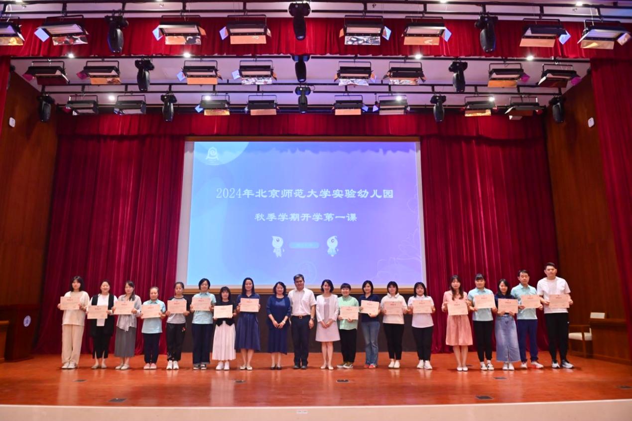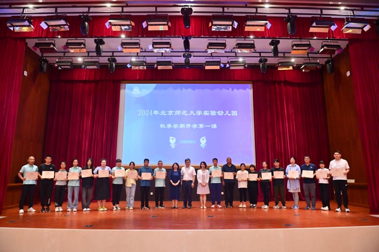为贯彻新时代党的教育方针,落实立德树人根本任务,正规滚球app官方网站加强教师队伍培养,引领教师做理想信念坚定的实践者、善用科学思维的创新者、敢于担当责任的奋斗者、坚定追求卓越的引领者、高尚人格魅力的示范者。在2023-2024年度,幼儿园共有312人荣获师德标兵、双优教师、单优教师、优秀班集体、后勤标兵等荣誉称号。幼儿园党总支书记杜军、总园长夏华颖、张西超教授及集团管理干部们为获奖者颁奖。