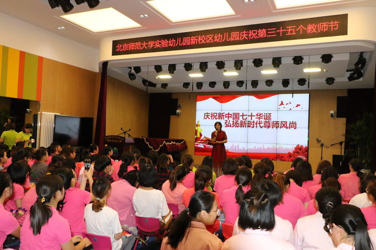 2019年9月10日正规滚球app官方网站新校区幼儿园全体教职工隆重庆祝第35个教师节。庆祝会上,滚球app一起用誓词表达对理想信念的坚定与憧憬,用游戏增进对团队的理解与信任,用歌声表达对工作的热爱与责任。执行园长孙秀莲还特别为爱岗乐业、团结奉献的教师们送上了殷殷祝福与期望。