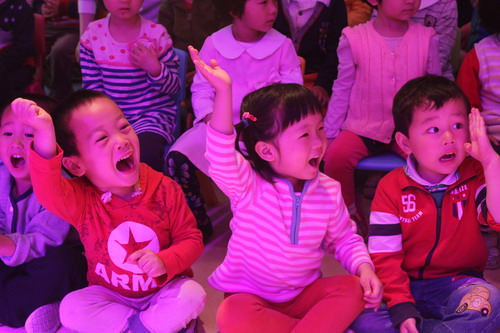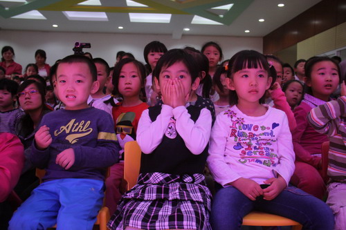 本届阅读节的主题是“经典悦读,让滚球app的世界更精彩”,开幕式共分两场——日托部专场和全托部专场。每一场活动开始,伴随着卡通人偶“与书共舞”的表演,孩子们被带入“书香相伴”的美好情境中。随后,园长与孩子们围绕图书话题进行的轻松有趣的互动,进一步激发起孩子们爱书、读书的热情。各班小朋友代表的好书推荐,声情并茂、有理有据,让孩子们直观生动地了解到更多同伴喜欢的好书。而各班老师或小朋友表演的一个个精彩绝伦的经典故事,则把活动现场的气氛不断推向高潮,让孩子们的表情也伴随着故事情节的发展或紧张或轻松、或莞尔或捧腹。开幕式在孩子们的意犹未尽中结束了,但本届阅读节的精彩活动却刚刚开始。