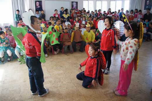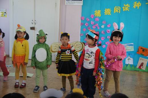 阅读节期间,日托部孩子们自编自导的“幼儿童话剧展演活动”,分两场在音乐教室生动上演。日托各班幼儿都积极参与了活动。在老师的引导下,孩子们一起设计、讨论、自制道具、认真排演。