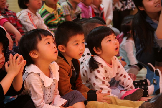 孩子们认真观看故事表演