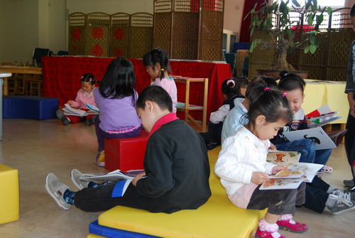 教师诵读后,孩子们的自主阅读……