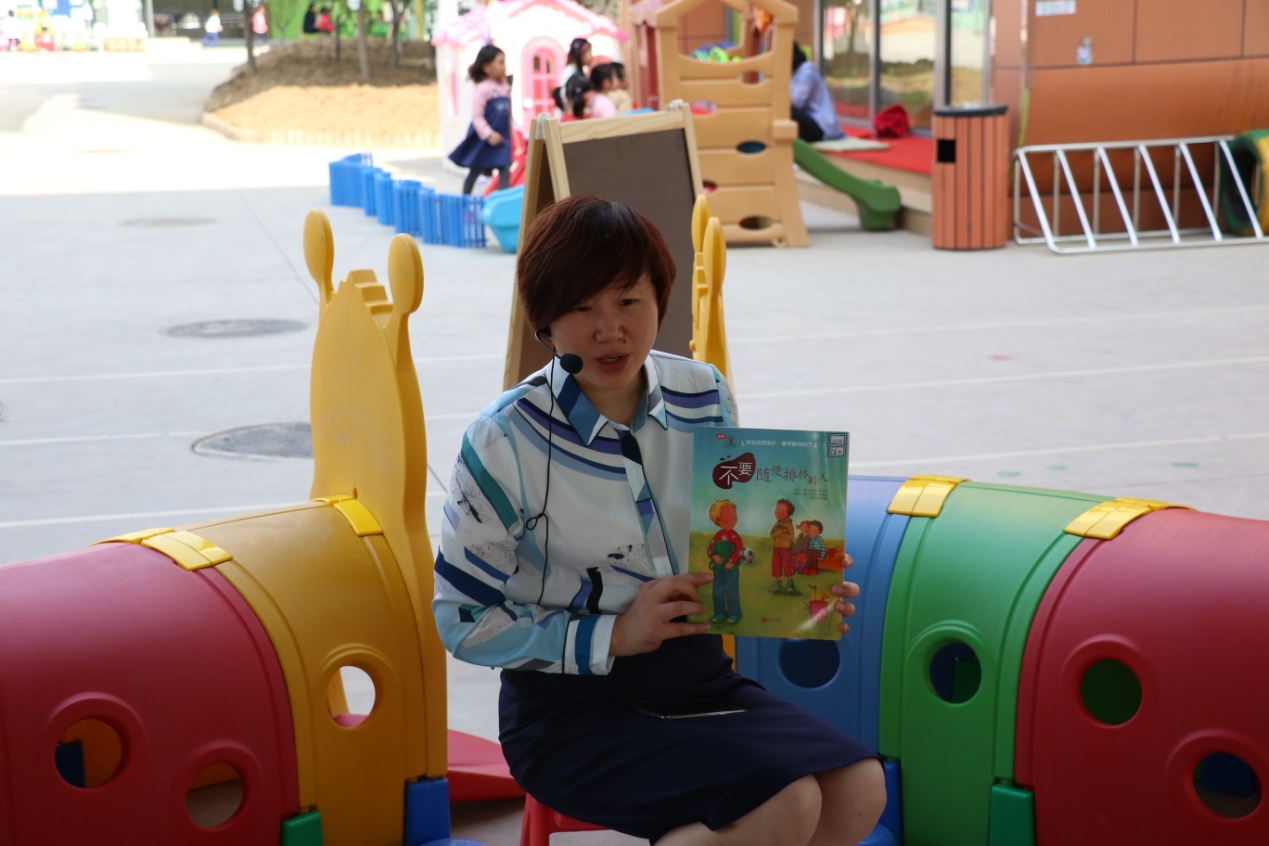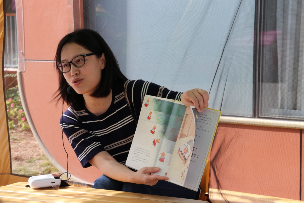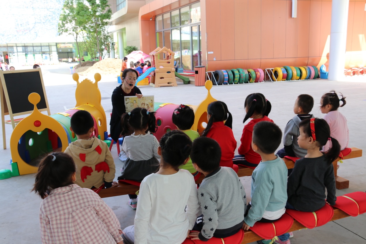 中一班故事妈妈:“幼儿园安排了几个点户外讲故事哦,很好的体验。让我想起了草莓诗社,在草原坐在篝火边讲故事,去海边讲故事……最自然的亲临其境。孩子们分批次坐过来,他们也会自己选择其他地点,人数差不多了就开始讲,当然也会遇到忠实的粉丝,一直不走的小朋友,那么就算是一两个小朋友在,最好也还是要给他讲。今天我讲了四次,人数都很满,第五次的时候有三个小朋友,我选择继续讲,听完我这一个就去别的家长那里去了,一次户外可以听几个不同故事,孩子们好充实!”