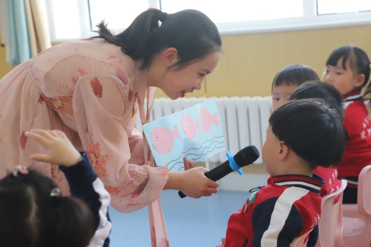 小一班娄天馨老师用参与互动和游戏的方式讲述《从头动到脚》。