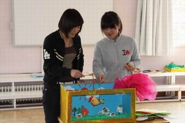 2.内容上体现多样,凸显“传统经典故事”:老师们工作热情很高,能够迅速将教研的内容运用到班级教学与玩教具制作中。比如关于春天的散文、诗歌体现在教具中如散文《春姑娘》、儿歌《数春》、《春天》、《春天在哪里》儿童诗等题材;再如经典故事《小蝌蚪找妈妈》、《金色的房子》、《龟兔赛跑》、《小意达的花》、《拔萝卜》都体现在教具中,同时也展现班级教学内容;还有关于古诗、姓名、量词等内容。