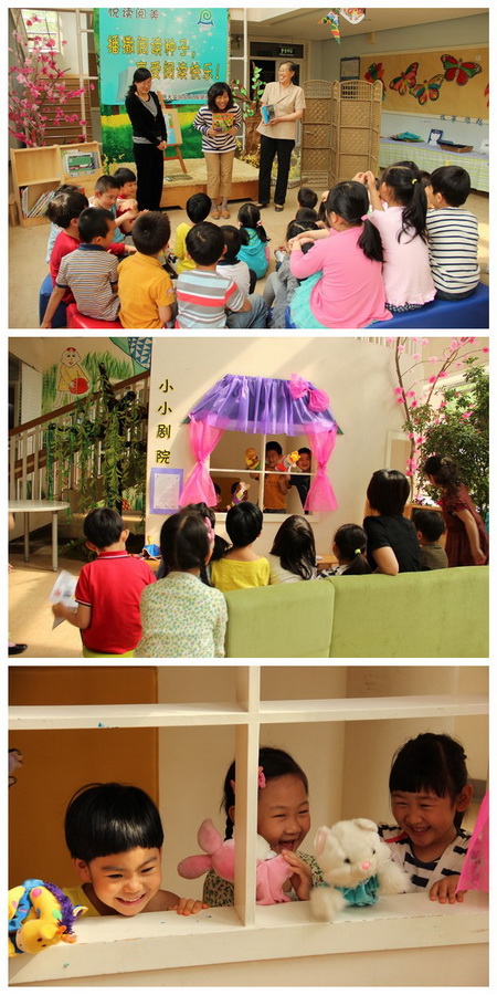 孩子们在春意浓浓的环境中,既可以一个人静静地看书,也可以和老师、爸爸妈妈一起讲书,还可以边看书边玩游戏……,孩子们在看、听、说、做的过程中,一个个精彩故事流入心田,一幅幅美丽的画面印在脑海中,让美围墨幽绕童年,“阅读悦美”。