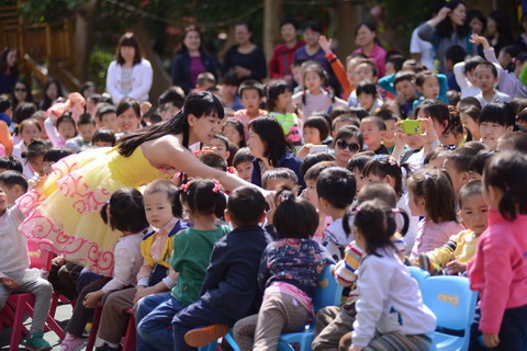 教师们精心编排了系列中国经典童话剧,如《小蝌蚪找妈妈》、《半夜鸡叫》、《猪先生去野餐》等。在故事表演的过程中老师们还惟妙惟肖地讲述了等《聪明的乌龟》、《没有牙齿的大老虎》、《洗四十四双袜子的小熊》经典传统故事。夸张的造型、生动的表演、抑扬顿挫地讲述,让孩子们笑声不断、掌声连连。
