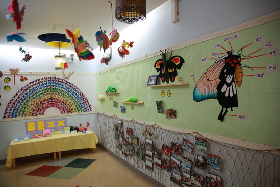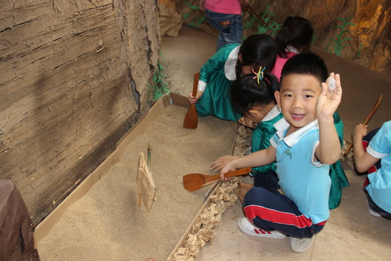 望京分园的开放式主题大厅活动来源于幼儿的经验,并扩展幼儿的经验。在今年的春游活动中,滚球app组织大班幼儿去了周口店、中小班幼儿去了蝴蝶谷,有了亲身体验和直观感受之后,教师将春游中幼儿最感兴趣的活动进行扩展和延伸,将幼儿的已有经验“物化”为有准备的环境,通过“考古游戏”、“探秘蝴蝶谷”等活动区进一步提升幼儿的经验。