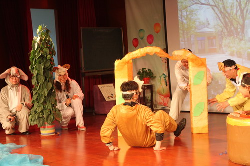 小五班家长表演的《小羊和狼》