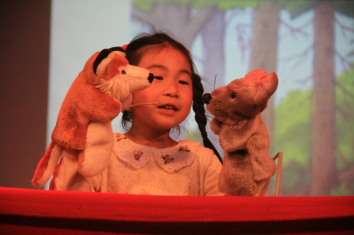 大四班小朋友借助手偶讲述的《咕噜牛》别具一格