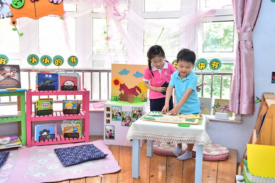 除了班级常规的区域活动和教学活动,在整个四月滚球app还专门开设了班级的“悦读时光”以支持幼儿持久的阅读兴趣。如每日好书推荐,与同伴分享自己最喜欢的书、每周嘉宾有约,邀请爸爸妈妈来讲故事、不定期地开展班级故事小剧场,与爸爸妈妈一起表演故事、创设班级阅读宣传栏,随时地分享自己的阅读故事,传递阅读的快乐。紧密的家园合作让孩子对阅读的兴趣在回到家后得到了有效地延伸,有的家长还为孩子在家中专门创设了阅读角,连家里的弟弟妹妹都被感染得喜欢上了书,每天的亲子阅读时光成为了家中最温馨的时刻。