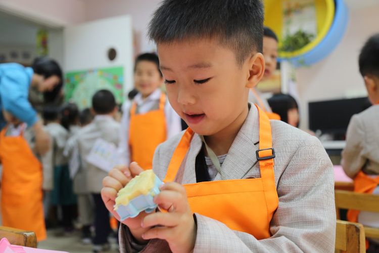 期待已久的自主性活动终于开始了,小朋友们三个一群,两个一伙,带着自己的通关文牒开始了奇妙的旅程。老师们准备的项目种类繁多,各具特色,孩子们沉浸其中,专注而快乐。