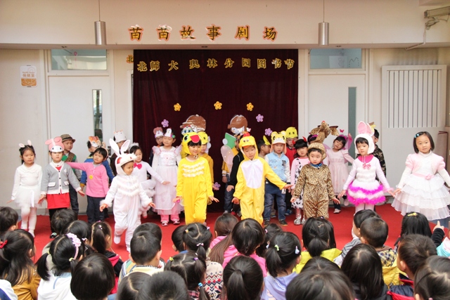 4月23日至25日,奥林分园举行了为期三天的“苗苗故事剧场”演出,全园小朋友都有机会登上小小舞台,成为小演员参与故事剧表演,此外,还能作为小观众观看其他小朋友的演出。在本届图书节中,孩子们共表演了13个故事剧目,除了经典的故事如《小羊喝水》、《小壁虎找妈妈》、《没有牙齿的大老虎》、《丑小鸭》等外,还有老师和孩子们共同改编、创编的故事剧《丑小鸭、拇指姑娘和皇帝》、《夜晚》等,在活动中孩子们自主参与、大胆创新、快乐体验,充分享受着参与的喜悦和收获!