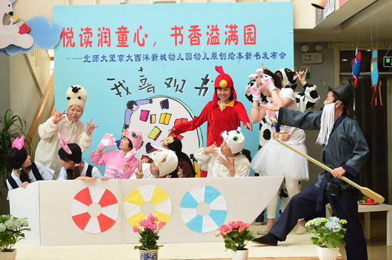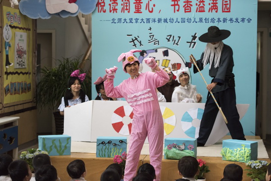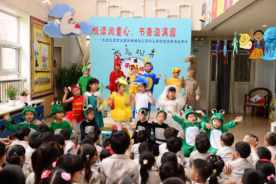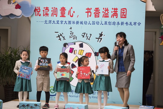2016年4月26日,在全园师生和家长的精心准备下,望京分园终于迎来了期盼已久的阅读节开幕式活动。本次阅读节开幕式最重要的内容就是为滚球app去年一整年的教研和教学活动成果——幼儿原创绘本做新书发布会。经过4个多月的编排和校对,在四位热心家长的帮助下,孩子的绘画作品终于变成了一本本精装的绘本故事。看着自己的书被自豪地介绍给大家,孩子们和老师们激动的心情洋溢在整个会场。新书发布会后,孩子们还一起欣赏了家长剧团表演的精彩绘本故事《甘伯伯去游河》、《胖国王》及由混龄四班小朋友表演的原创绘本故事《新编小蝌蚪找妈妈》,渡过了一上午的快乐阅读时光。
