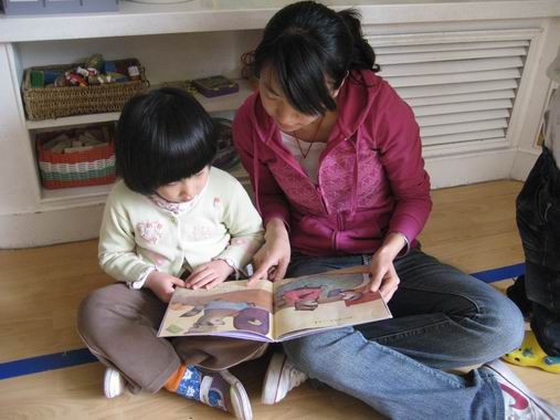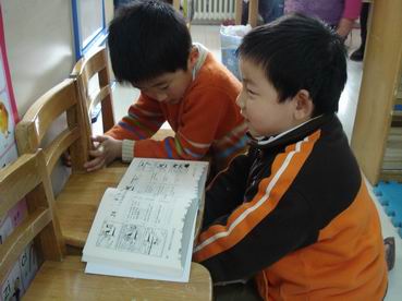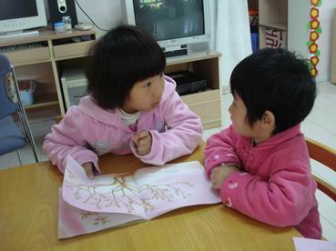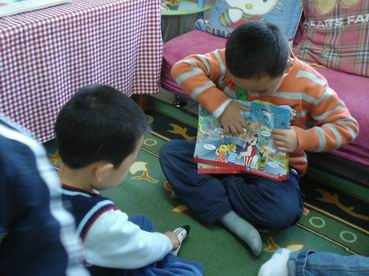 2、小朋友们手拉手:各班故事接力、好书共享、混龄班大带小、日托班跨班级的大带小阅读活动。