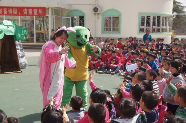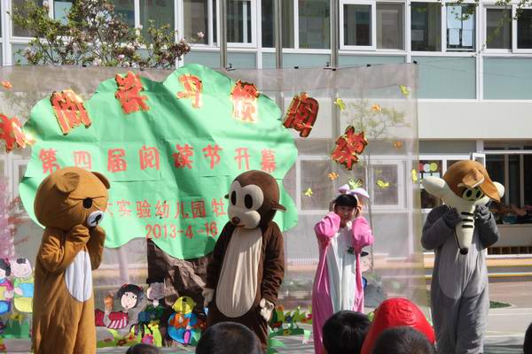 教师们和孩子们一起精心编排了系列经典童话剧,如《捉迷藏》、《绿野仙踪》、《新编龟兔赛跑》等。在故事表演的过程中老师们还惟妙惟肖地讲述了《会打喷嚏的帽子》、《小猪变形记》、《猴子买桃》等孩子们喜爱的故事。夸张的造型、生动的表演、抑扬顿挫地讲述,让孩子们笑声不断、掌声连连。